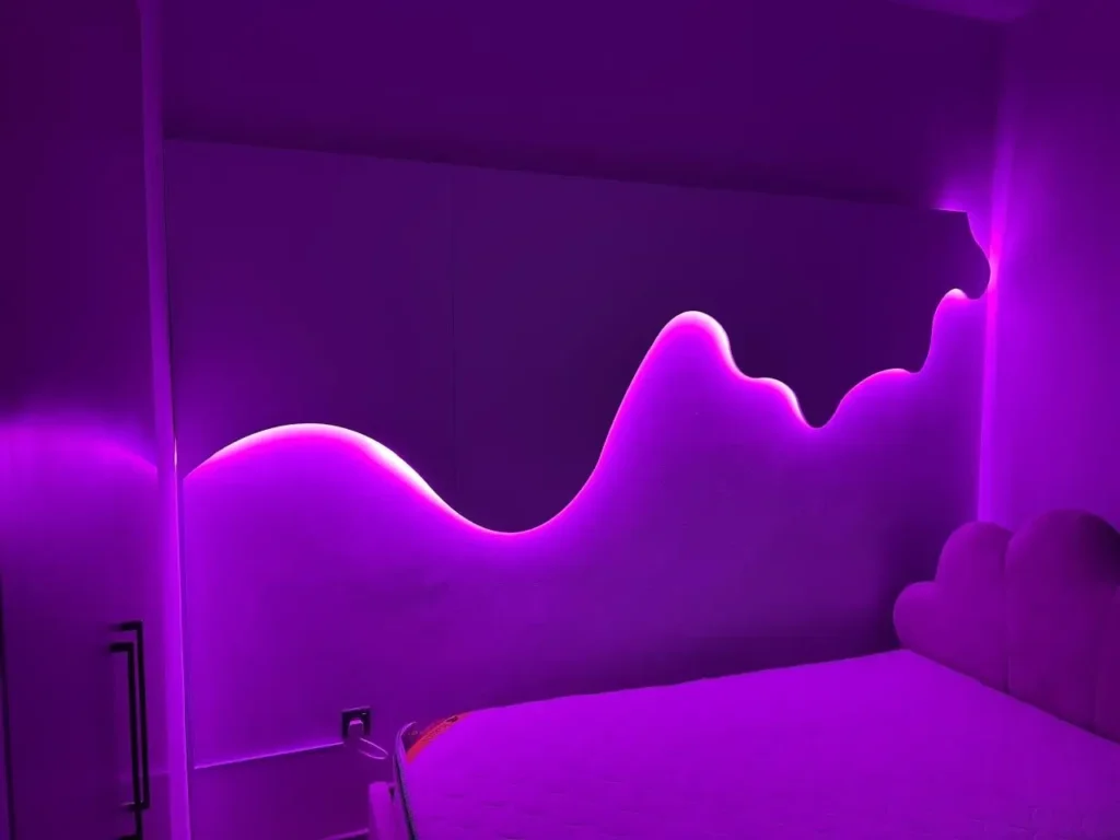 RGB strips and panels create beautiful mood lighting for bedrooms, gaming rooms, and living spaces. We install them cleanly with hidden drivers.